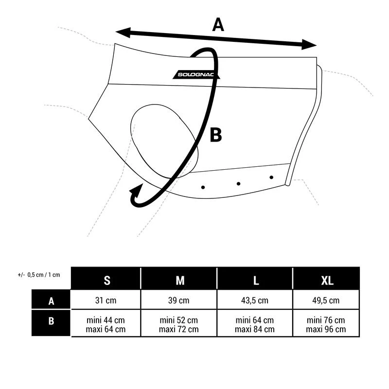 Diamètre ouverture patte: S 10,5 cm / M 15,5 cm / L 16,5 cm / XL 18,5 cm