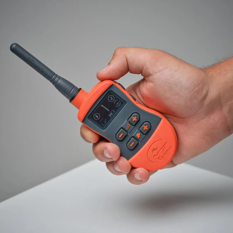 Le SportTrainer 875 de la marque SportDOG est conçu pour la chasse et le dressage sur le terrain. Ce système est équipé d’un écran OLED facile à lire, vous pouvez voir le chien sélectionné, le niveau de stimulation électrostatique, le mode de stimulation et l’état de la batterie en un coup d’œil. Cette fonctionnalité, associée aux deux boutons de grande taille +/- permettant d’alterner facilement entre les chiens, fait du SD-875E un modèle particulièrement adapté à la chasse.