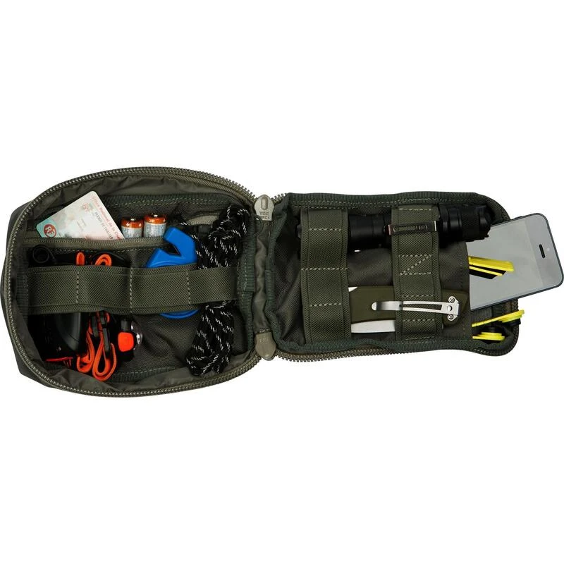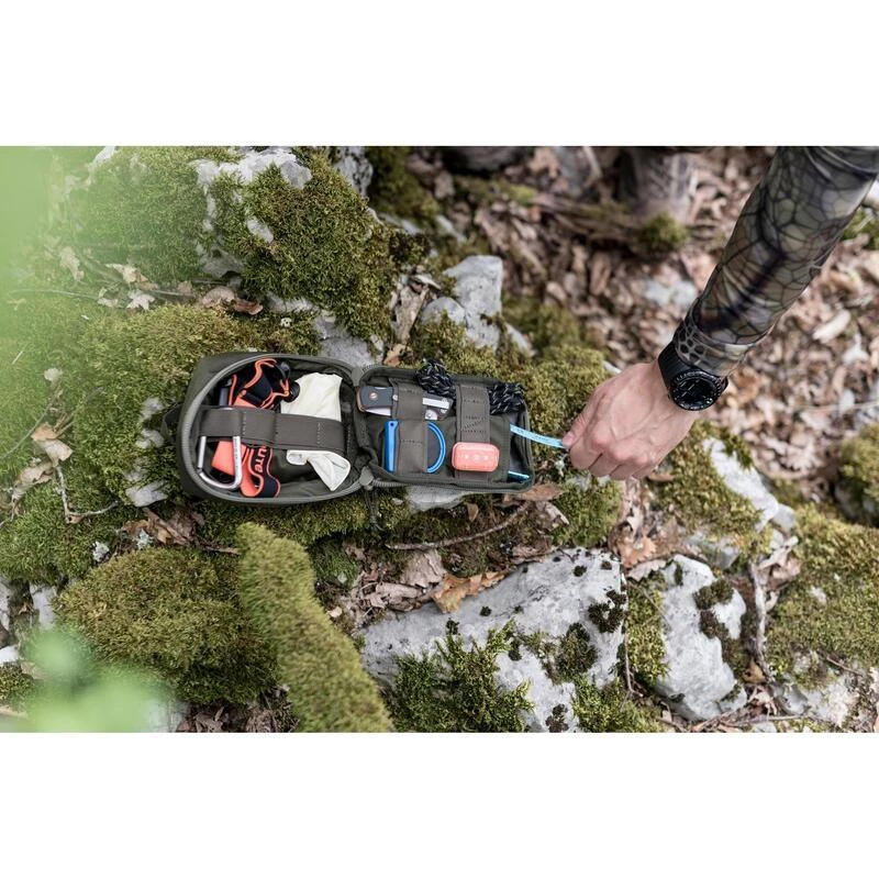 Pochette équipée à l’intérieur de passants élastiques pour fixer des objets pour la pratique de la chasse, du bushcraft, de la pêche ou pour la vie de tous les jours. Convient très bien pour un kit de premiers soins
