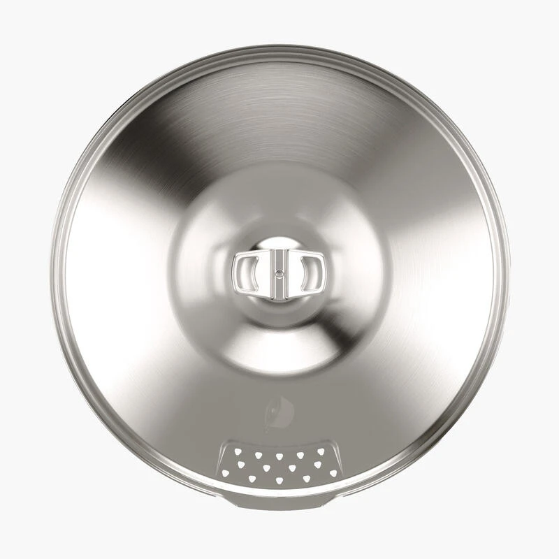 Lors de la cuisson, l’ensemble du faitout monte en température, pour le manipuler, utilisez impérativement des gants et/ou des maniques spécifiques. Sa construction, 100% en acier inoxydable pour plus de facilité d’utilisation et plus de résistance, ne possède pas de rupture thermique.