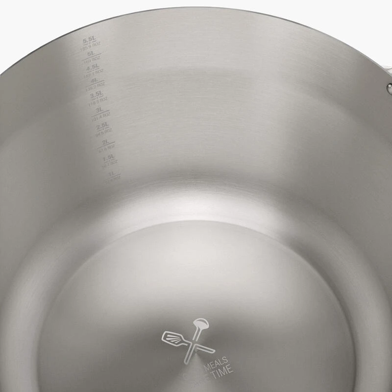 Nous avons choisi de l’acier inoxydable 18/8 (304) car il allie sécurité alimentaire et résistance à long terme : il ne s’oxyde pas et il évite la corrosion. Et comme l’inox est un peu moins conducteur que l’aluminium, nous avons intégré sous nos casseroles et poêles de la gamme MH500, un double fond en aluminium. Cela apporte une diffusion de chaleur et une efficacité de chauffe accrue et permet donc de réduire la quantité de gaz nécessaire pour cuire.